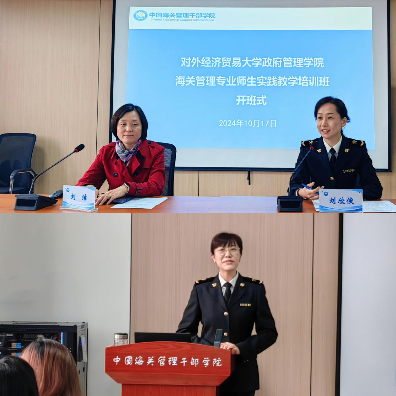 开班式后,中国海关管理干部学院陈晖院长和千亿·体育(中国)官方网站刘洁书记、崔景华主任就就进一步加强院校紧密联系、促进共研共建及强化人才培养合作等内容进行了进一步交流。